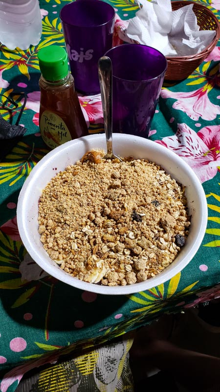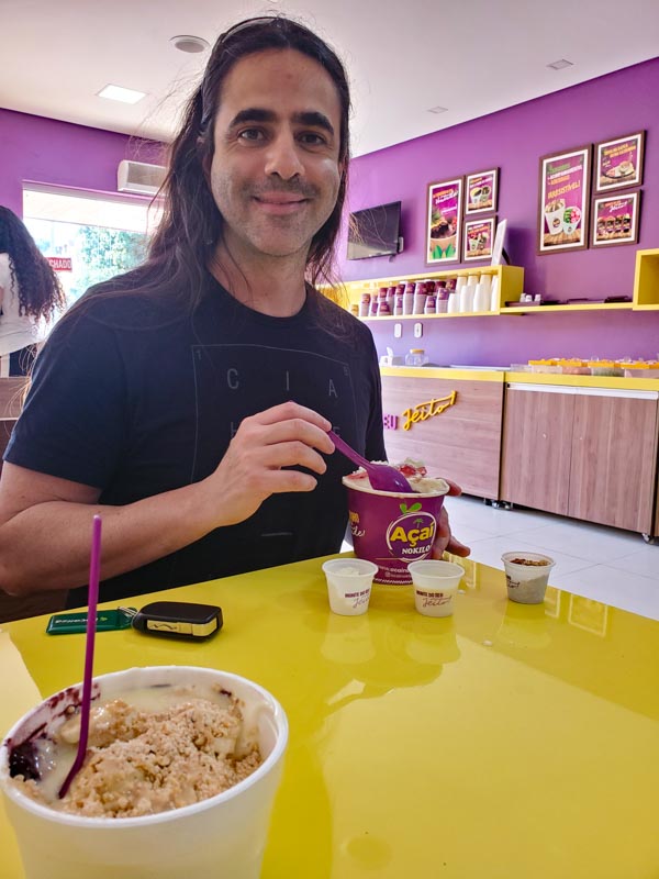 Não tinha muita opção ali. Acabamos parando para comer em um lugar de açaí. Estava bem gostoso!