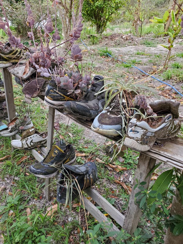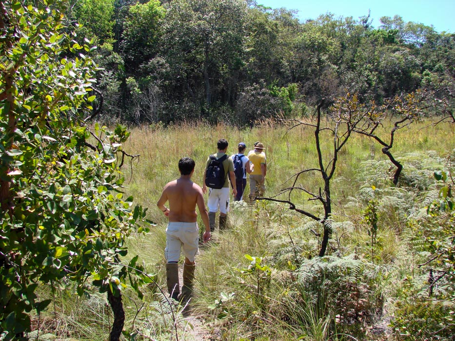 Depois da Seriema ganhar um ovo para seu café da manhã, colocamos uma proteção contra picadas de cobra nas canelas e partimos para a trilha.
