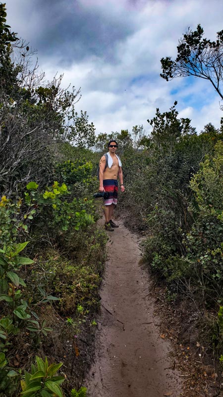 Depois uma bela descida e mais uma caminhada até o ponto de deixar as coisas e cair na água.
