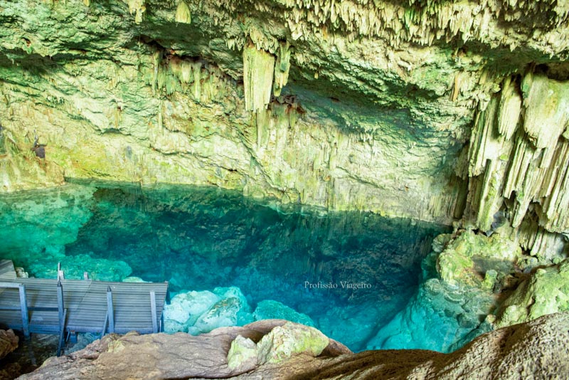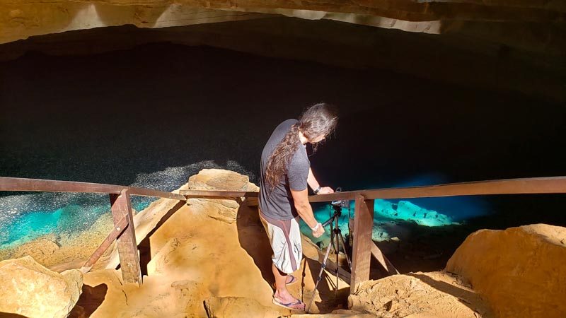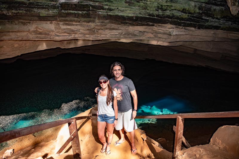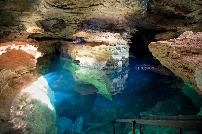 Preferi ir ao Poço Encantado antes do Poço Azul pois o horário do raio de Sol do Poço Encantado acaba antes do que no Poço Azul. Mas não adiantou… O raio de Sol parou de entrar na caverna 5 dias antes. No Poço Encantado ele só entra até meados de Setembro e eu cheguei uns dias atrasado.