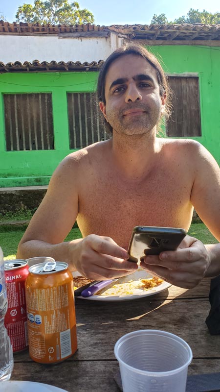 Só que aí vem aquela lembrança… São 6km de volta até o carro que nenhum de nós 2 estava a fim de andar. A Tati já logo lançou uma ideia nos caras do restaurante e arrumamos um cara de moto para nos levar até a margem do rio!