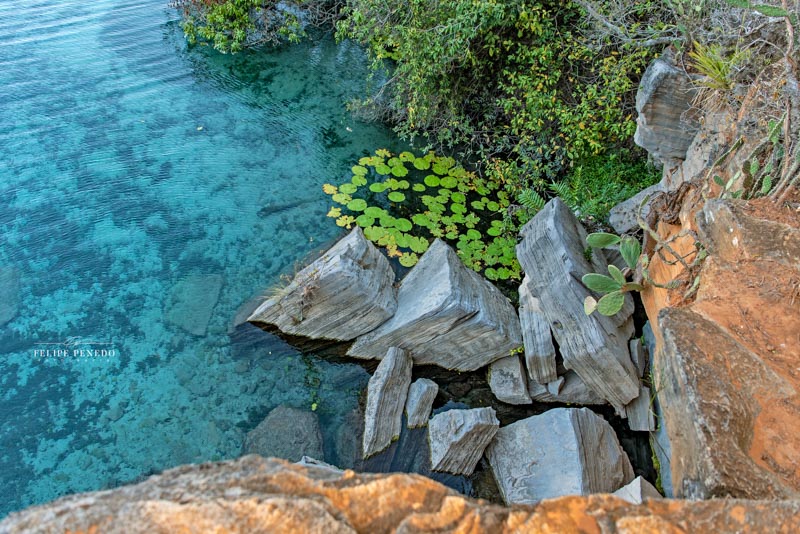 Aqui no Poço Encantado não é permitido entrar na água. Só podemos apreciar a beleza de longe.