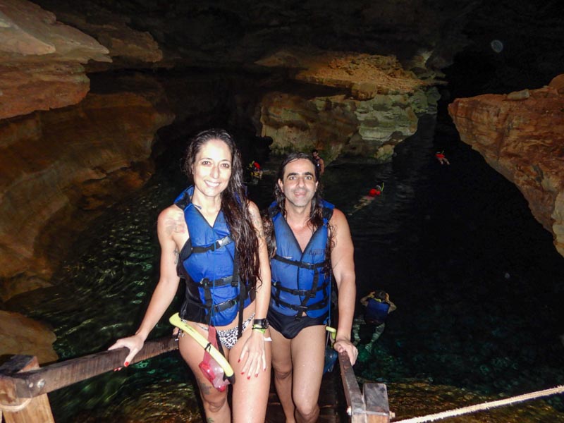 Fomos fazer nesse dia um dos principais passeios da Chapada, a Caverna Aroe-Jari e a Gruta da Lagoa Azul.