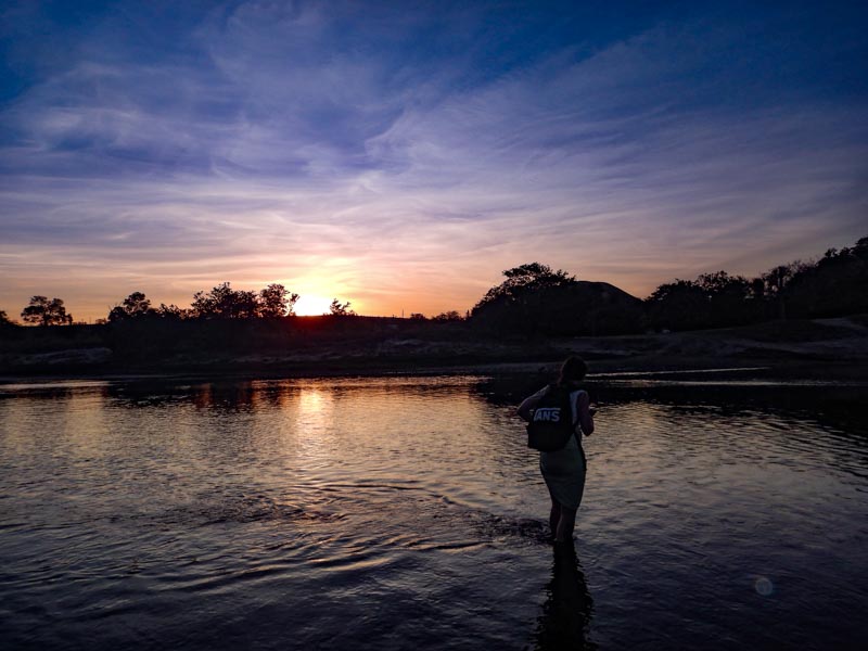 Na hora de ir embora ainda paramos para curtir o pôr do Sol na beira do rio.