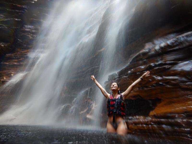 Fomos até debaixo da cachoeira para recarregar todas as energias possíveis…