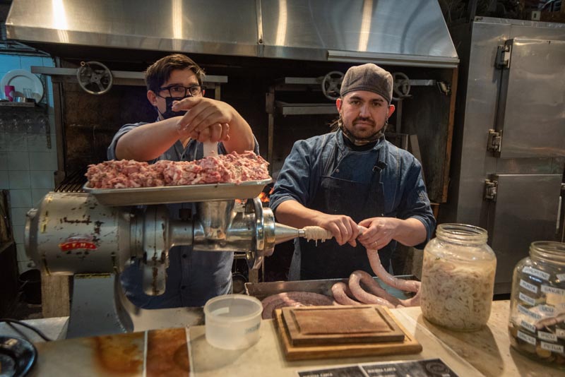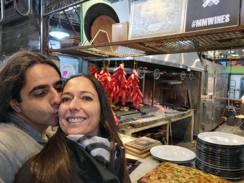 Escolhemos um restaurante de parrilla para sentar no balcão e comemos uma carne deliciosa!