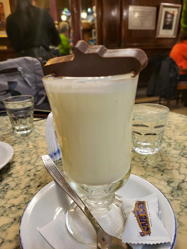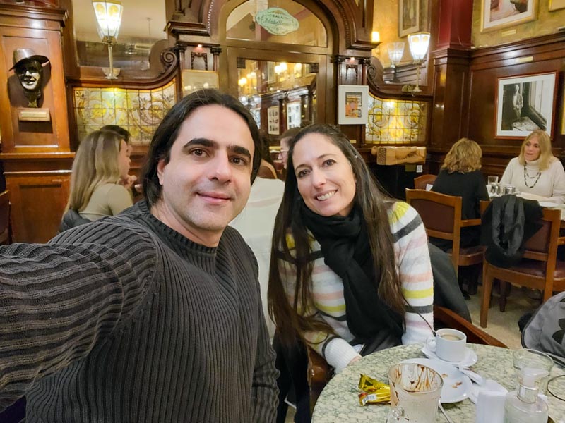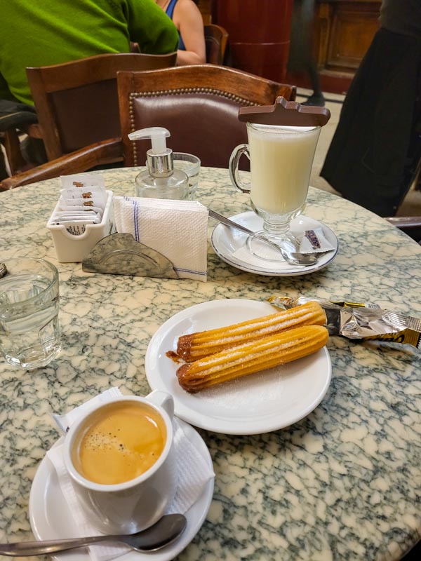 Já no caminho de volta para o hotel, paramos no Café Tortoni para um café e guloseimas. Tomei um delicioso submarino e comemos os tradicionais churros da casa! Uma delícia.