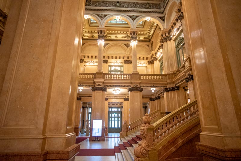 Primeira parada foi no Teatro Colón, que ficava do lado do nosso hotel. Fizemos um tour guiado por todo o teatro.