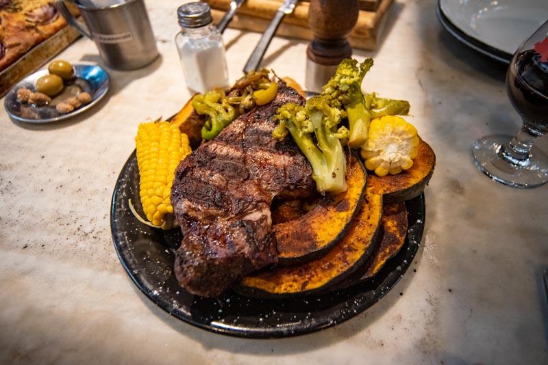 De noite fomos até a cidade. Não encontramos muitas opções e a cidade estava com umas obras gigantes e então estava até meio complicado de rodar por lá. Fomos em um restaurante mais arrumadinho que encontramos e tivemos uma janta muito boa!