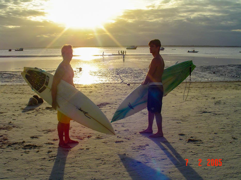 Mais para o final do dia fomos tentar pegar umas ondas na praia de fora, quando ainda achava que poderia ser um grande surfista! Hahahaha!