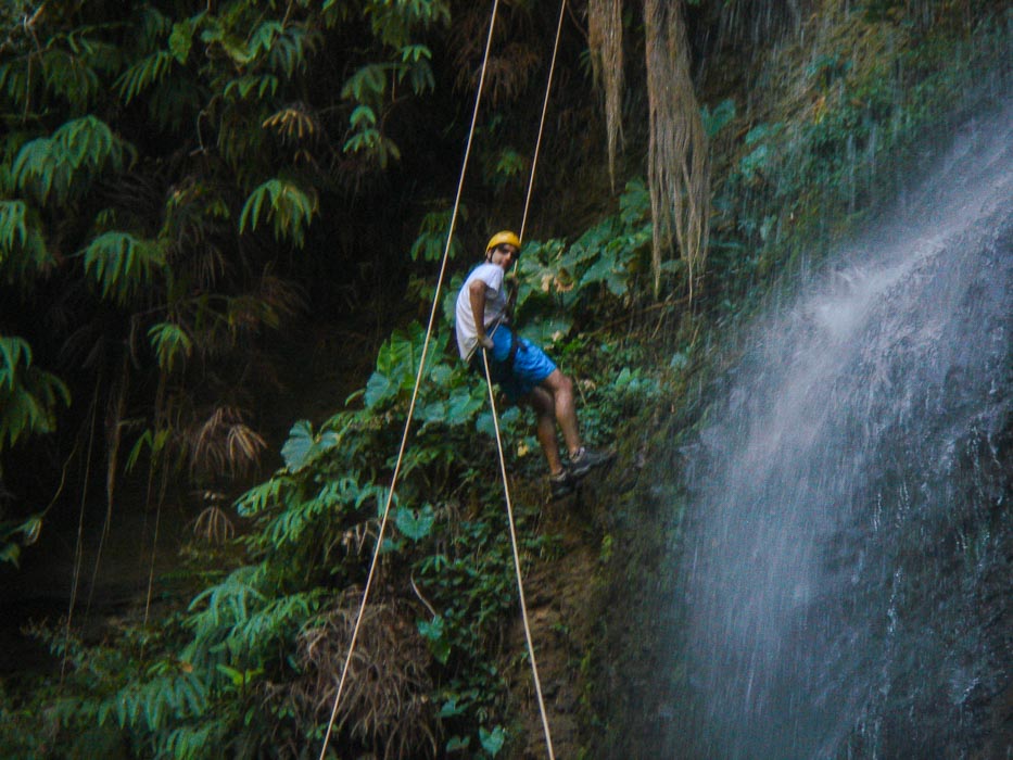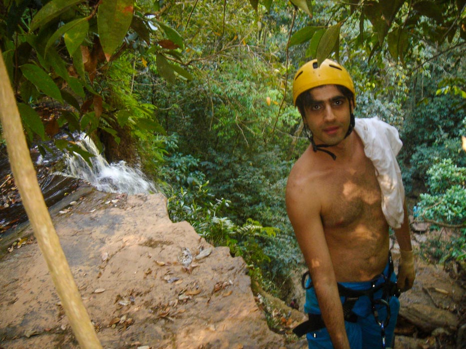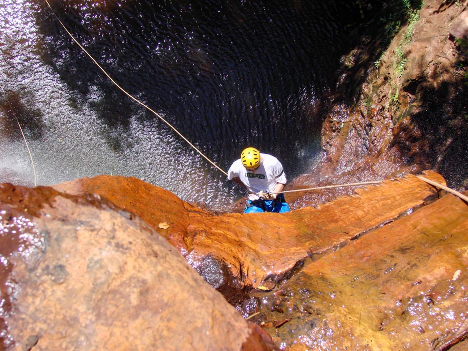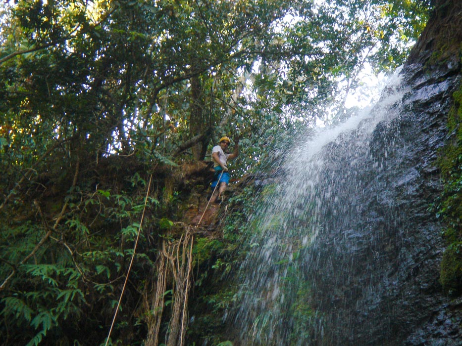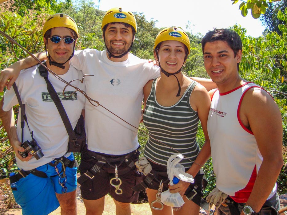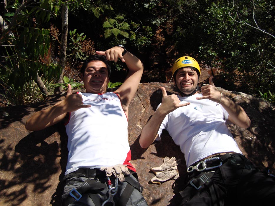 Esse era o dia do Rapel! Se não me engano o nome do passeio era Canionismo. Nossa trilha era acompanhando a descida do rio, onde fizemos 3 rapeis (plural de rapel? Hahaha!), 2 bem altos em cachoeiras lindas e um bem menor apenas para vencer um grande desnível na trilha.