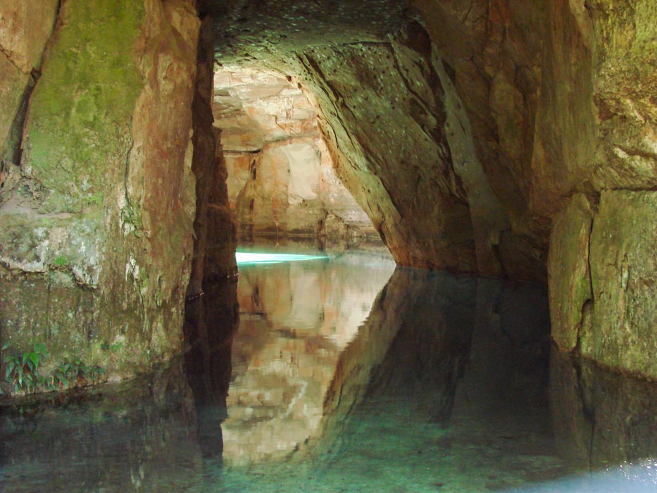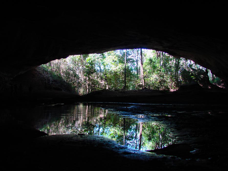 A vista mais bonita da caverna é de dentro para fora com o reflexo das árvores dentro da caverna.