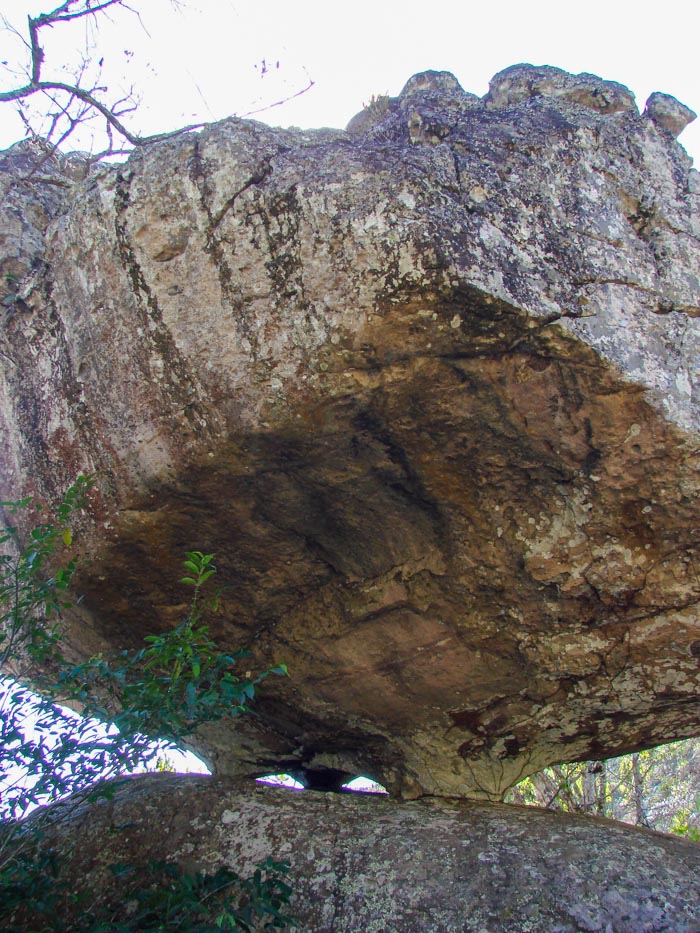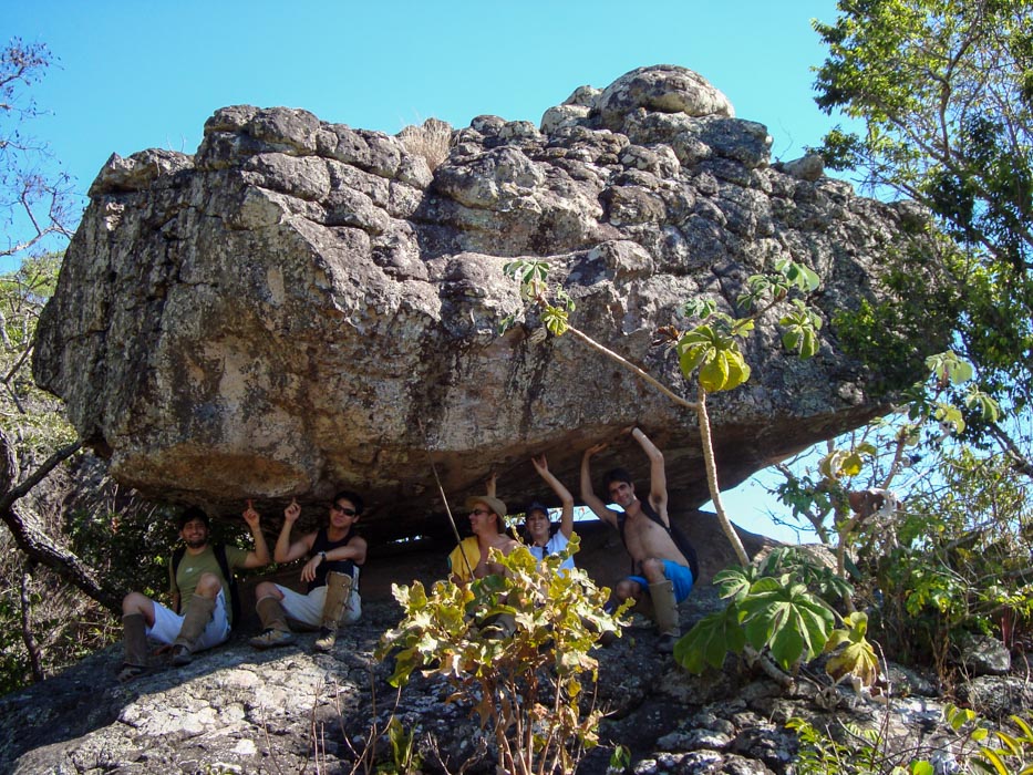 Seguimos a trilha e paramos para fotografar essa pedra equilibrada nem sei como…