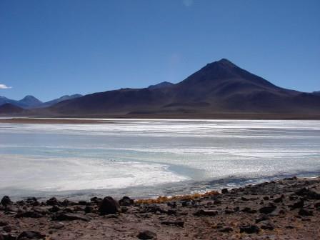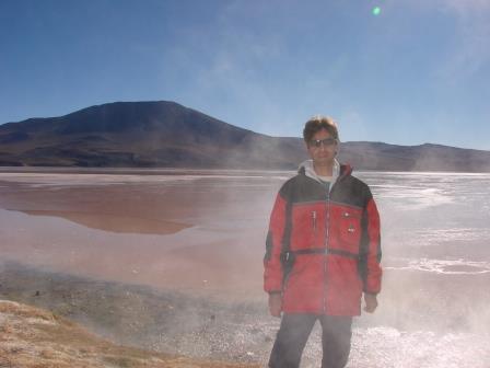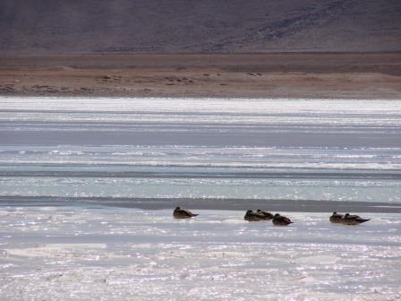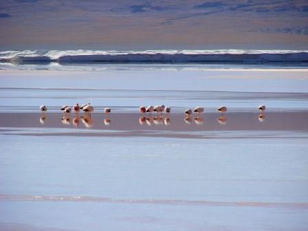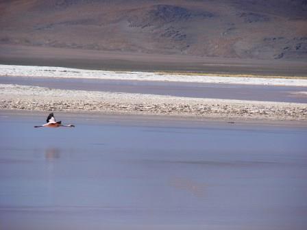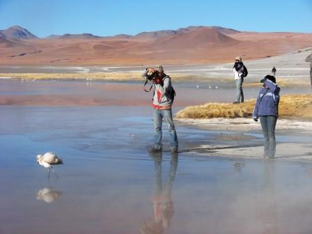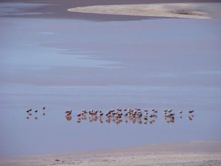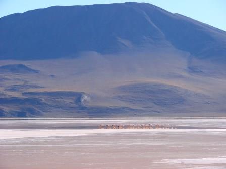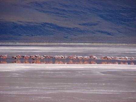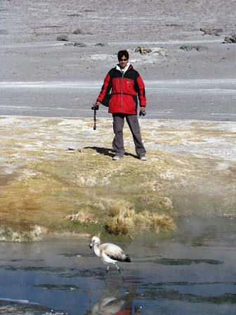 A Laguna Colorada, mesmo em horários menos propícios, é sensacional… Queria ficar a manhã inteira ali. A nascente, perto das margens é quente, mas no meio estava toda congelada. Poucos Flamingos ainda estavam por ali, mas suficientes para deixarem aquele lugar mais espetacular ainda.