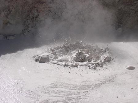Aqui é uma espécie de atividade vulcânica… Pelo que entendi é uma boca de vulcão mesmo, com umas aberturas. O cara falou que existe o risco (mínimo) de alguma parte ceder e cairmos dentro daquele negócio.