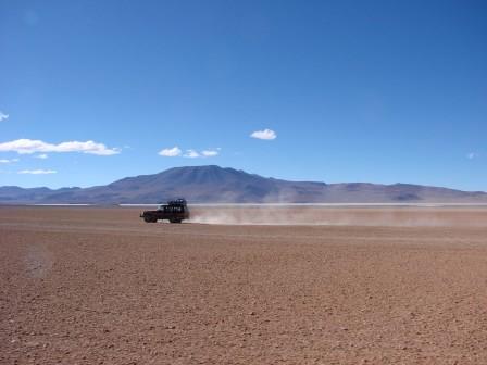Nesse dia alcançaríamos o Salar de Uyuni. Estávamos muito ansiosos por isso, mas o dia começou com uma noticia nada animadora. Manifestantes bloquearam as entradas do Salar e da cidade de Uyuni. O Pablo, nosso motorista, conhecia bem a região e disse então que pegaria alguns caminhos alternativos para tentar entrar no Salar. Achamos ótima essa ideia e partimos para lá. Foi meio tenso o caminho.