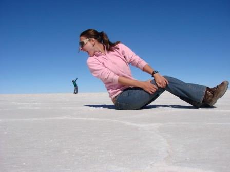 O Pablo estava nitidamente desconfortável com aquela situação. Mas depois de inúmeros solavancos por caminhos que só ele via, entramos no Salar. Aí foi só alegria!!!!