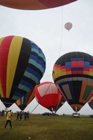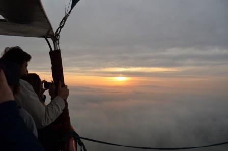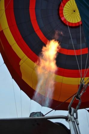 São várias operadoras que começam a encher seus balões em um grande campo aberto… Aí mistura aquelas cores, com as rajadas de fogo dos maçaricos, com o sol nascendo… Realmente muito legal.