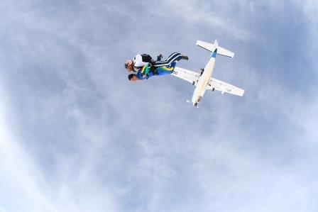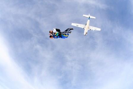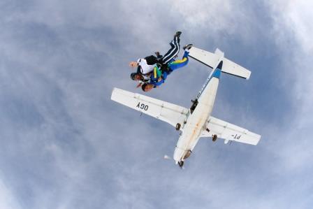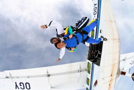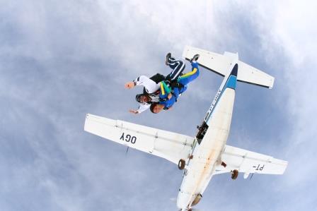 É abrir a porta do avião, ir para a beirada e pular… Assim…