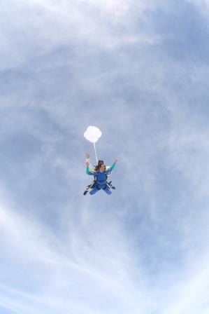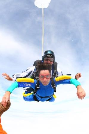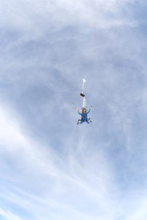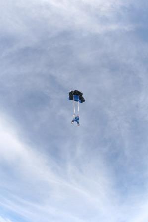 Depois que o paraquedas abre é legal que se pode curtir tudo com mais calma, naquele silêncio… Estava com um pouco de medo ainda, mas consegui curtir bem!