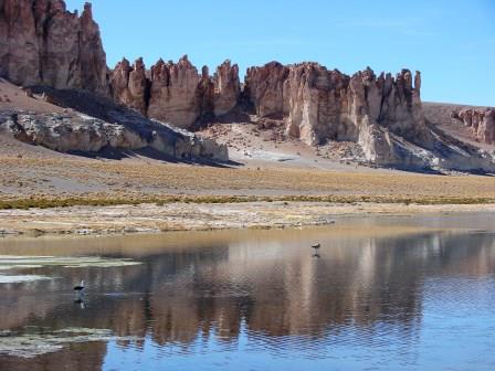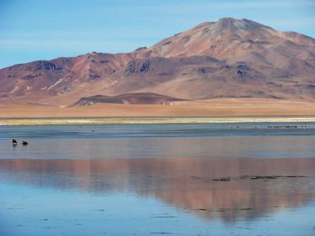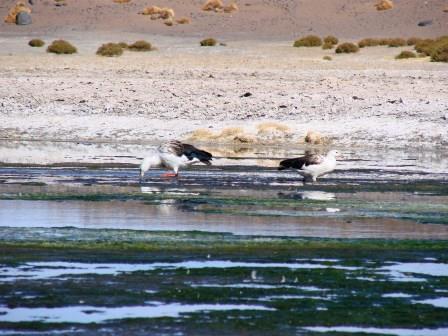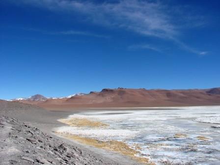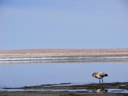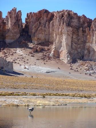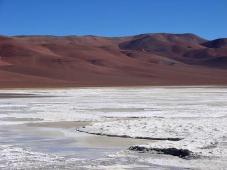 A Laguna Colorada, mesmo em horários menos propícios, é sensacional… Queria ficar a manhã inteira ali. A nascente, perto das margens é quente, mas no meio estava toda congelada. Poucos Flamingos ainda estavam por ali, mas suficientes para deixarem aquele lugar mais espetacular ainda.