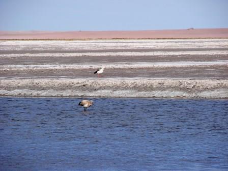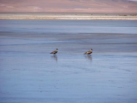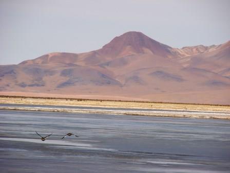 Nesse dia embarcamos para tour pelo Salar de Tara. Foi bem legal o passeio! Paramos em uma laguna congelada que o Victor disse que moram uns 5.000 flamingos no verão. Nesse dia já não tinha nenhum…