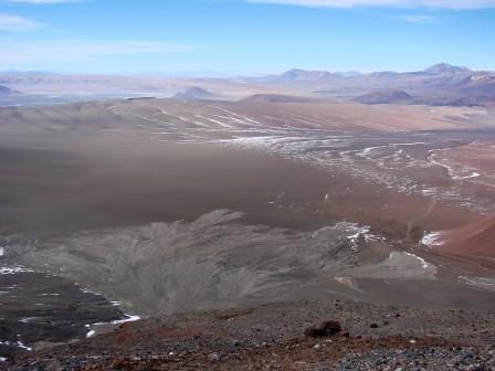 A cratera do Vulcão Lascar fica a 5.600 metros acima do nível do mar. O carro, segundo o guia, pára por volta dos 4.500.