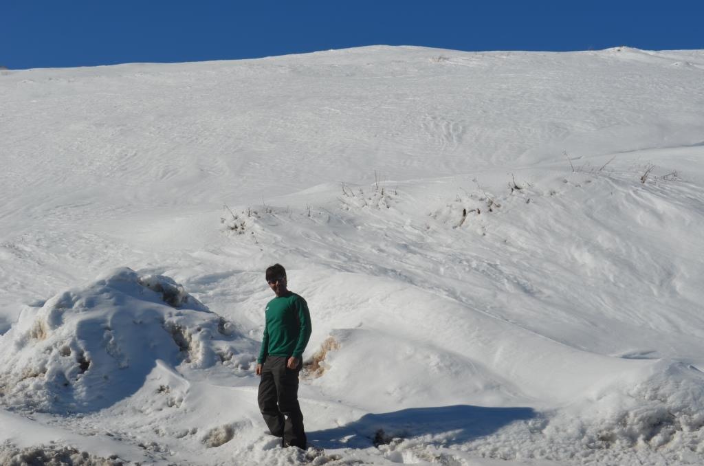 E aí o negócio começa a ficar sério. A subida é bem no limite entre caminhar e escalar, inclusive passando pelo espaço onde a água do degelo desce, para ajudar ainda!