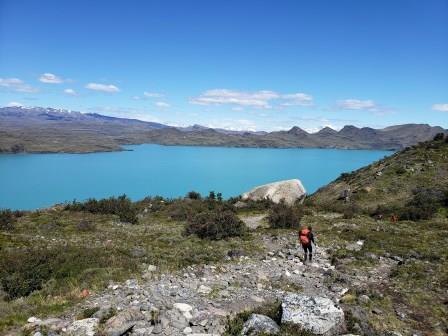 Um dos pontos altos desse trecho da caminhada é o Lago Skottsberg! O mirador do lago tem uma vista que chega a ser indecente!