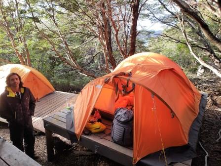 No acampamento Italiano você pode deixar seu equipamento para fazer a subida para o Mirador Francês e Britânico só com o necessário.