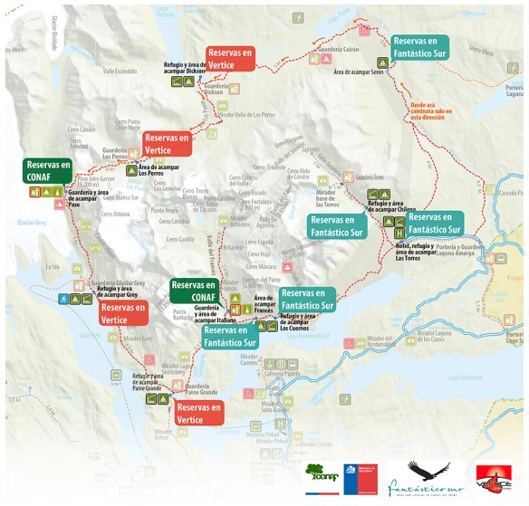 São algumas empresas que fazem o trajeto e todas fazem mais ou menos no mesmo horário, pois os transportes internos no parque são sincronizados com as chegadas dos ônibus de Puerto Natales.