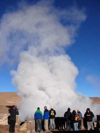 Fomos ao El Tatio nessa manhã. Frio de -8° e o humor da Débora proporcionalmente negativo!