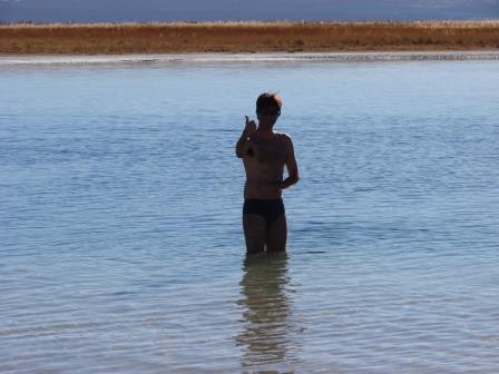 Em nossa primeira parada, podemos entrar em uma lagoa que de tanto sal, não nos deixa afundar… Poucos corajosos se aventuraram… A água estava congelando! Nesse eu decidi tentar, mas não rolou… Uma pena.